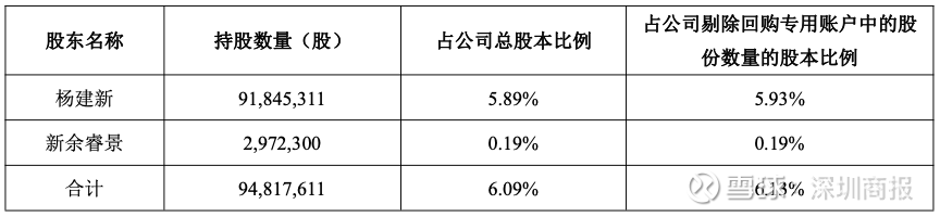 截至2025年9月23日,杨建新及其一致行动人持股情况如下: