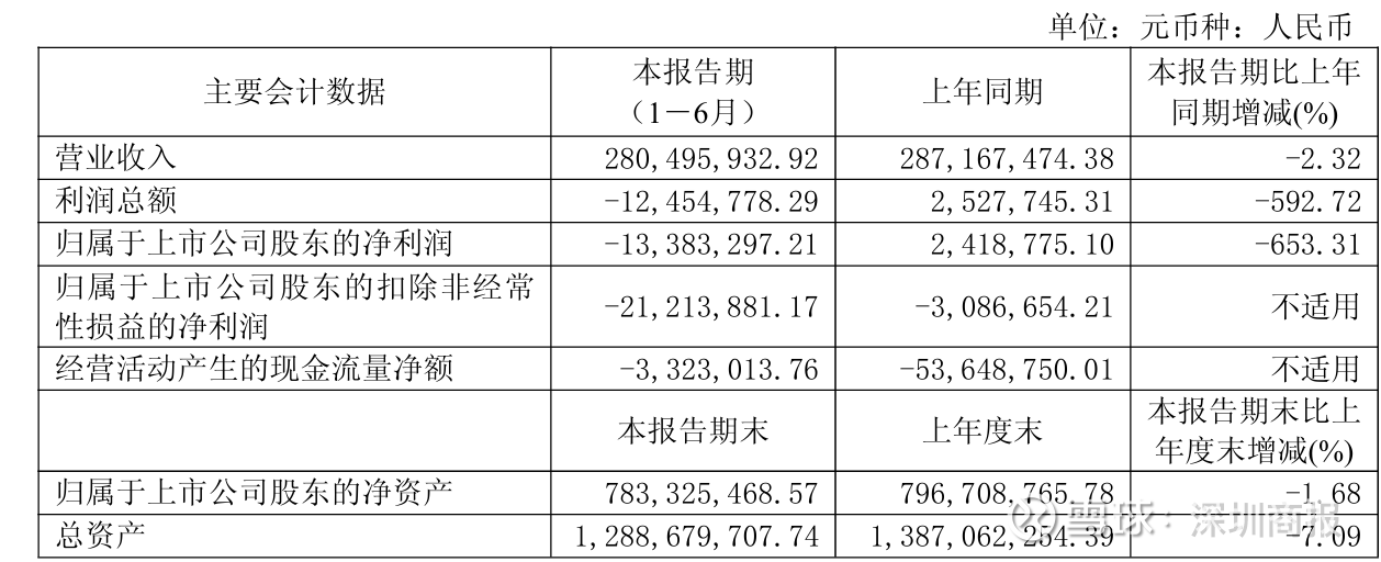 2025年上半年,上半年营业收入为2.80亿元,同比下降2.32%;归母净利润为-1338.33万元,同比下降653.31%;扣非归母净利润为-2121.39万元,同比下降587.28%。