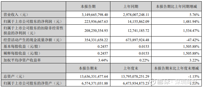 其中,第二季度,公司营业收入为16.4亿元,同比上升8.4%;归母净利润为1.74亿元,同比上升1419.7%;扣非归母净利润为1.6亿元,同比上升12000.0%。