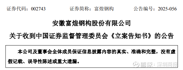 A股钢结构龙头富煌钢构(002743.SZ)9月26日晚间公告,公司当日收到中国证券监督管理委员会对公司送达的《立案告知书》,公司因涉嫌信息披露违法违规,中国证监会决定对公司进行立案。