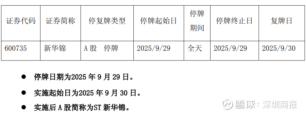9月26日晚间,新华锦(600735)公告,因公司存在关联方非经营性占用资金且未在1个月内完成清偿和整改,公司股票将被实施其他风险警示。公司股票9月29日停牌1天,于9月30日起复牌并实施其他风险警示,股票简称变更为“ST新华锦”,证券代码仍为“600735”,日涨跌幅限制为5%。