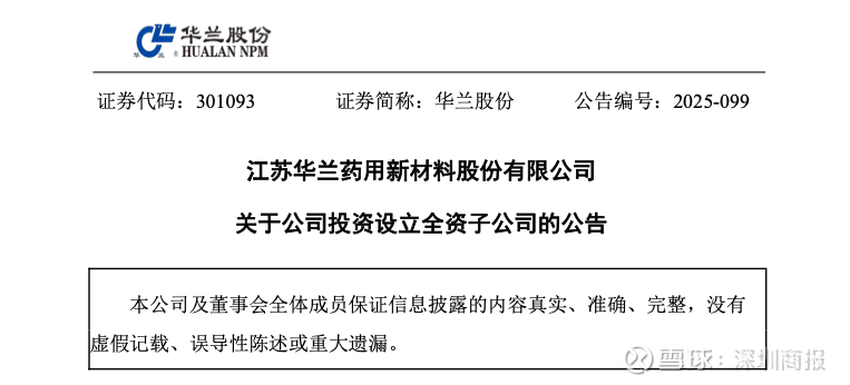 公告显示,华兰股份2025年9月26日召开第六届董事会第六次会议,审议通过了《关于公司投资设立全资子公司的议案》。根据公司战略布局和产业发展的需要,公司拟使用自有资金人民币5,000万元在海南省投资设立全资子公司。