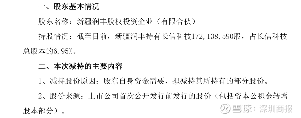 9月28日晚间,国内显示器件制造领域的龙头长信科技(300088)发布公告称,公司股东新疆润丰计划在2025年10月28日至2026年1月27日以集中竞价和大宗交易方式减持公司股份不超过6430万股,减持比例不超过公司当前总股本的2.60%。