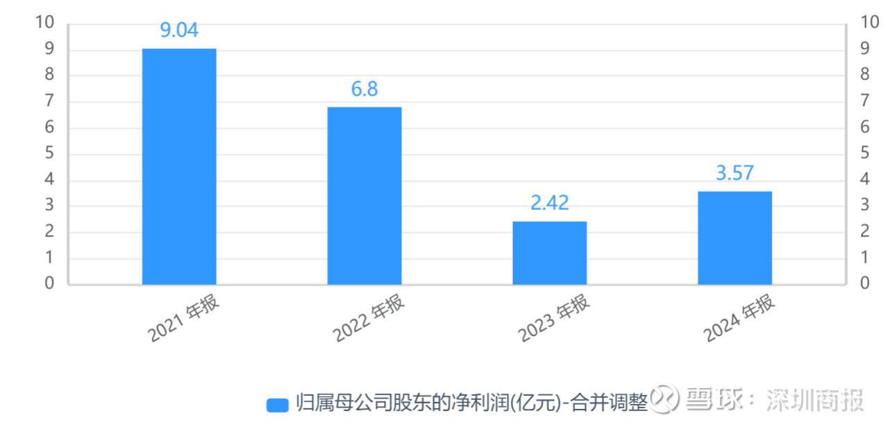 纵观近年业绩,长信科技的净利润呈现出显著的波动态势。去年虽同比有所回暖,但仅为三年前水平的四成不到。2021年至2024年,公司归母净利润分别为9.04亿元、6.8亿元、2.42亿元、3.57亿元。