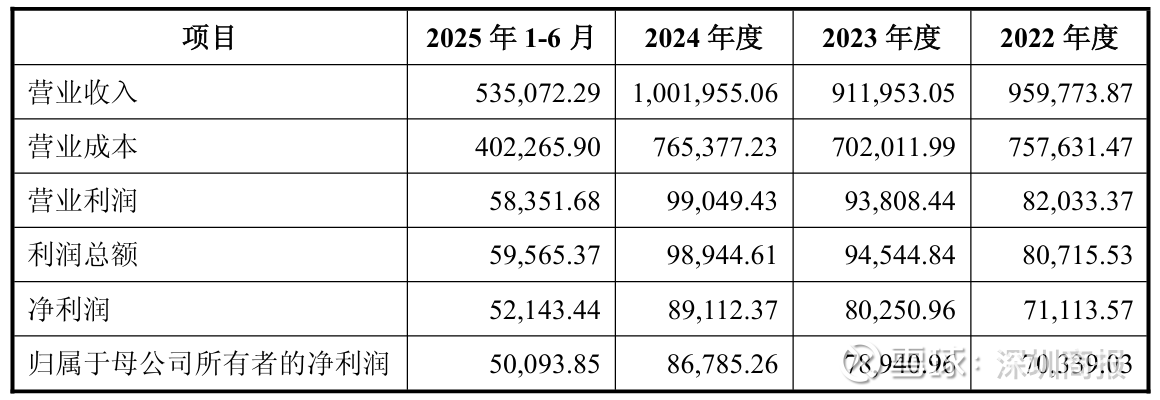 2022年至2024年度以及2025年1-6月,公司分别实现营业收入95.98亿元、91.20亿元、100.20亿元、53.51亿元;分别实现净利润7.11亿元、8.03亿元、8.91亿元以及5.21亿元。