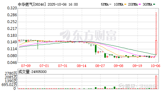 10月6日,在港股恒指收跌0.67%失守27000点的行情下,“仙股”中华燃气(08246.HK)却逆势“狂飙”。