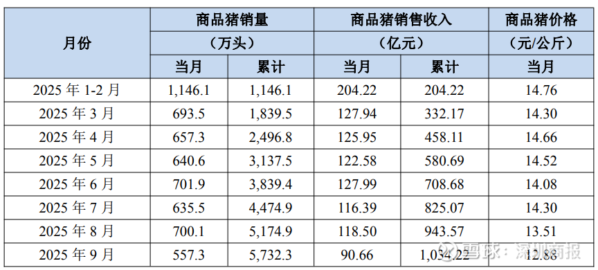 同日,牧原股份公布9月份销售简报。9月,公司销售商品猪557.3万头,同比增长11.05%(其中向全资子公司牧原肉食品有限公司及其子公司合计销售商品猪277.8万头);商品猪销售均价12.88元/公斤,同比下降30.94%;商品猪销售收入90.66亿元,同比下降22.46%。截至9月末,公司能繁母猪存栏为330.5万头。