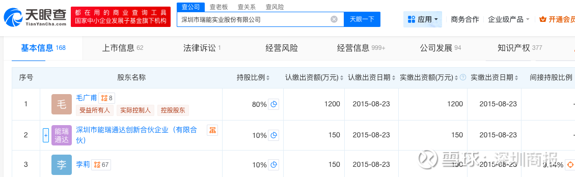 天眼查信息显示,李莉、毛广甫夫妇名下核心资产为深圳市瑞能实业股份有限公司(以下简称“瑞能股份”)。瑞能股份成立于2003年,主营业务为锂电池检测设备及锂电池后段生产线的研发、设计、生产和销售,产品主要应用于动力电池、3C数码电池等。