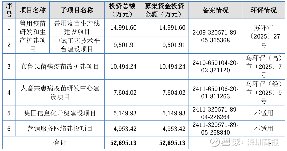 招股书显示,天康制药本次IPO拟募集资金5.27亿元,其中兽用疫苗研发和生产扩建项目募资1.28亿元,布鲁氏菌病疫苗改扩建项目募资1.05亿元,人畜共患病疫苗研发中心建设项目募资7604.02万元,集团信息化升级建设项目募资5149.93万元,营销服务网络建设项目募资4953.42万元。