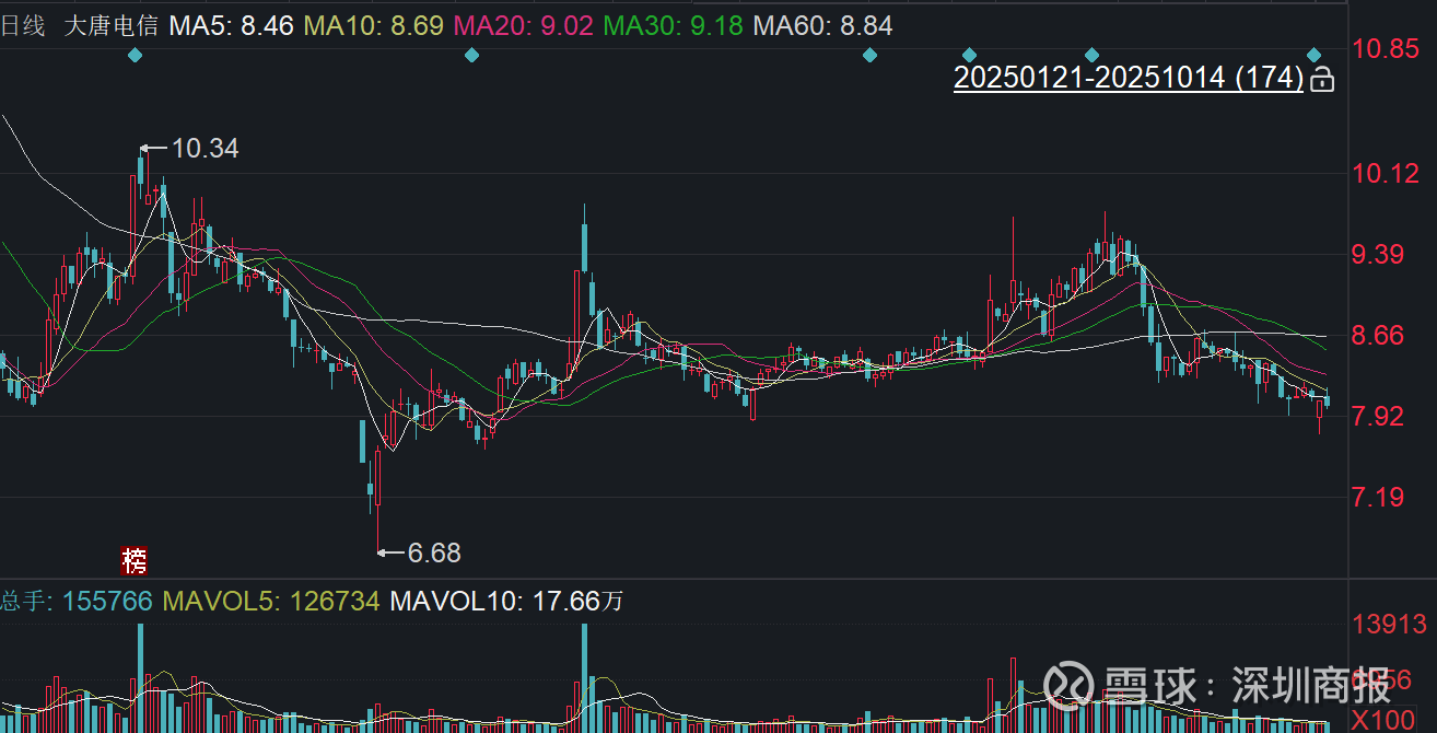 二级市场上,截至14日收盘,大唐电信下跌0.62%报8元/股,总市值104.29亿元,今年来公司股价累计下跌约7%。