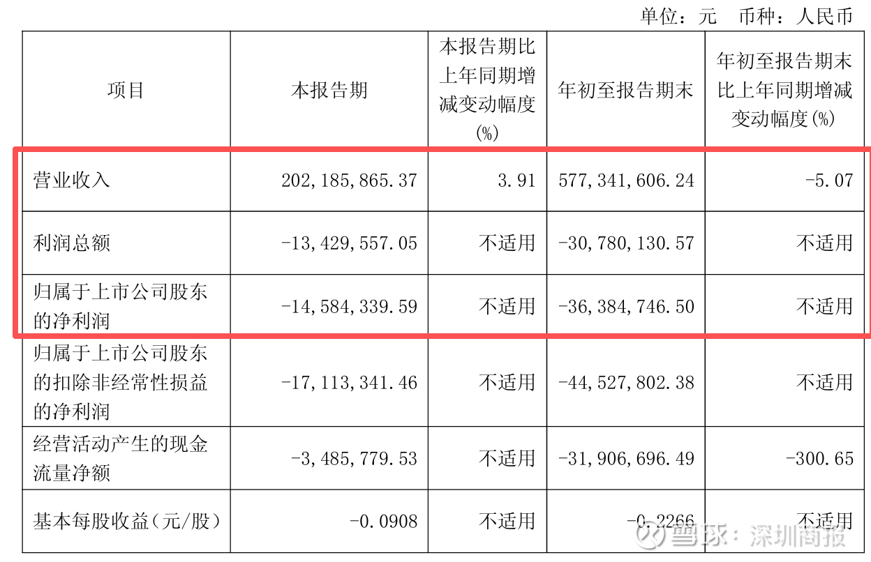 其中,第三季度,公司营业收入为2.02亿元,同比上升3.91%;归母净利润自去年同期亏损412万元变为亏损1458万元,亏损扩大;扣非归母净利润自去年同期亏损652万元变为亏损1711万元,亏损扩大。