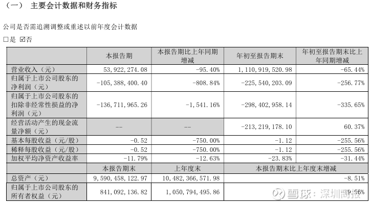 其中第三季度,公司营业收入为5392万元,同比下降95.4%;归母净利润亏损1.05亿元,同比下降808.8%;扣非归母净利润亏损1.37亿元,同比下降1541.2%;EPS为-0.5207元。