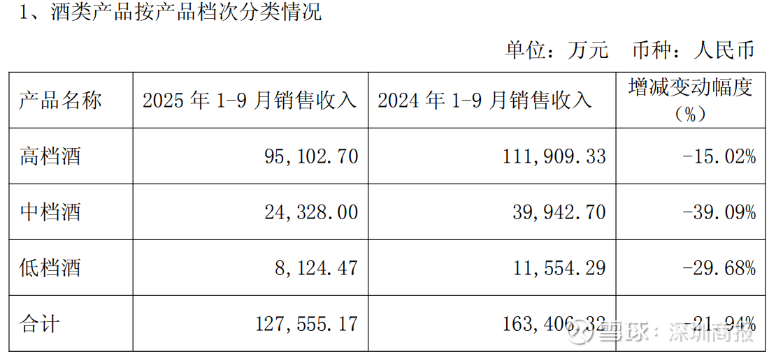 伊力特同时发布第三季度经营数据公告,按酒类产品档次分类,今年前三季度,伊力特高、中、低档酒分别实现销售收入为9.51亿元、2.43亿元和8124.47万元,销售收入分别同比下降15.02%、39.09%和29.68%。