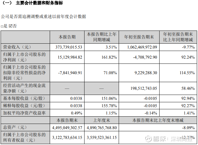 其中,第三季度实现营业收入3.74亿元,同比增长3.51%;归属于上市公司股东的净利润1513万元,同比增长161.82%。