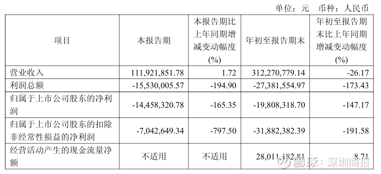 其中第三季度,公司营业收入为1.12亿元,同比上升1.7%;归母净利润亏损1446万元,同比下降165.4%;扣非归母净利润自去年同期亏损78万元变为亏损704万元,亏损额进一步扩大。