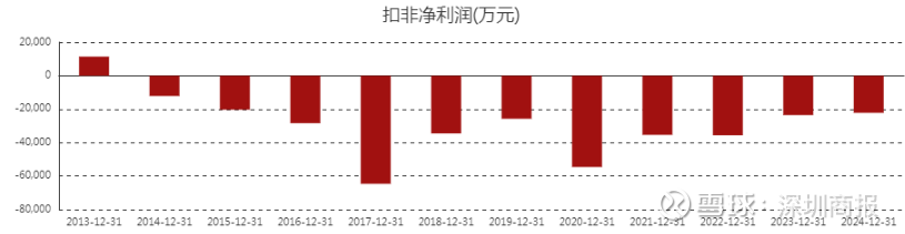 财务数据显示,2014年~2024年,华天酒店扣非净利润持续11年处于亏损状态,累计净亏损额达35.76亿元。