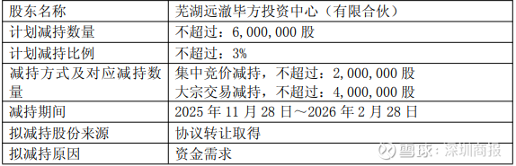 11月6日晚间,新通联(603022)发布公告,芜湖远澈毕方投资中心(有限合伙)(以下简称“毕方投资”)因经营需要,拟通过集中竞价或大宗交易方式减持所持有的公司股份,计划减持股份数量不超过600万股,即不超过公司总股本的3%。自本公告披露之日起15个交易日后的3个月内实施。