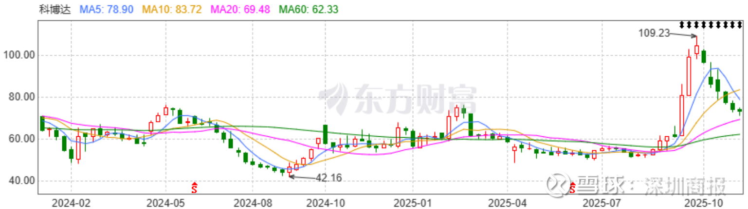 二级市场上,今年10月以来,科博达股价不断走低,截至11月12日收盘,报73.37元/股,总市值为296.3亿元。