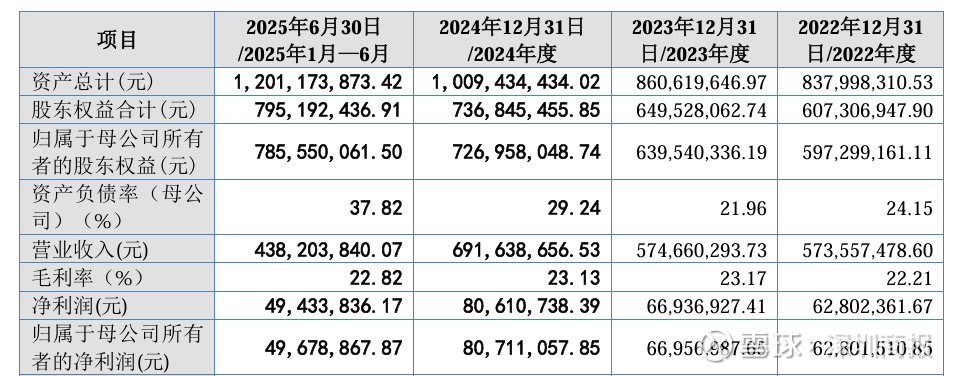 报告期(2022年至2024年、2025年上半年)各期,爱舍伦分别实现营收约5.74亿元、5.75亿元、6.92亿元、4.38亿元,归母净利润6280.15万元、6695.7万元、8071.11万元、4967.89万元。