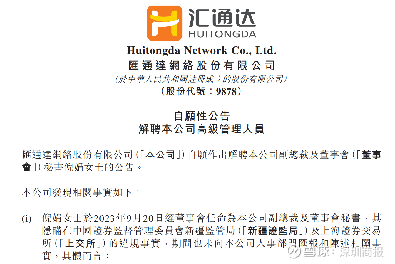 11月19日盘后,港股上市公司汇通达发布自愿性公告《解聘本公司高级管理人员》,解聘公司副总裁兼董事会秘书倪娟女士。