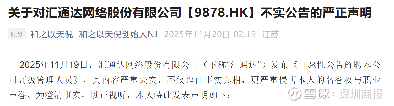 针对上述公告,倪娟在20日凌晨2点多发了声明文章予以回应,称公告内容严重失实。