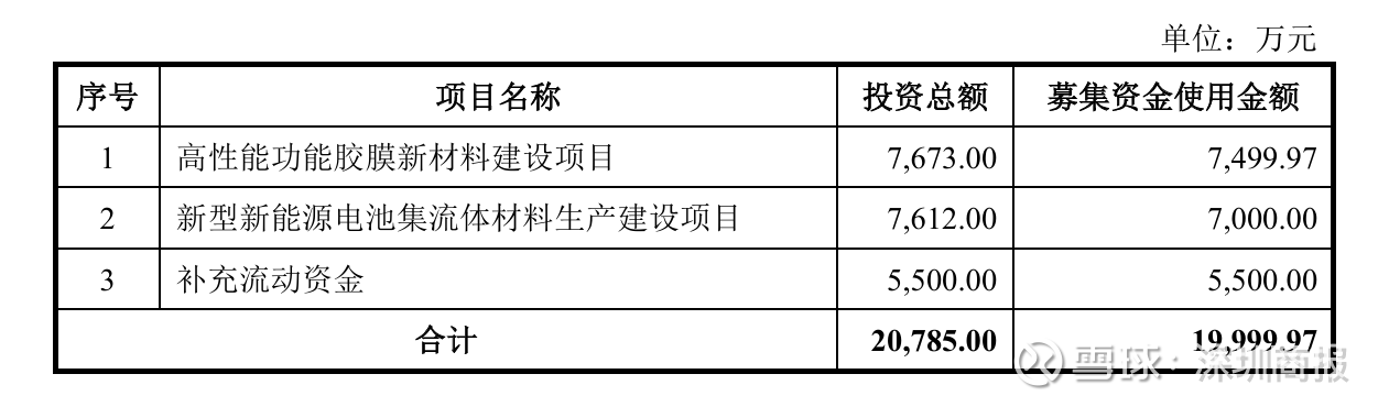 募集说明书(申报稿)显示,莱尔科技拟募资约2亿元,扣除发行费用后7673万元用于高性能功能胶膜新材料建设项目、7612万元用于新型新能源电池集流体材料生产建设项目、5500万元用于补充流动资金。