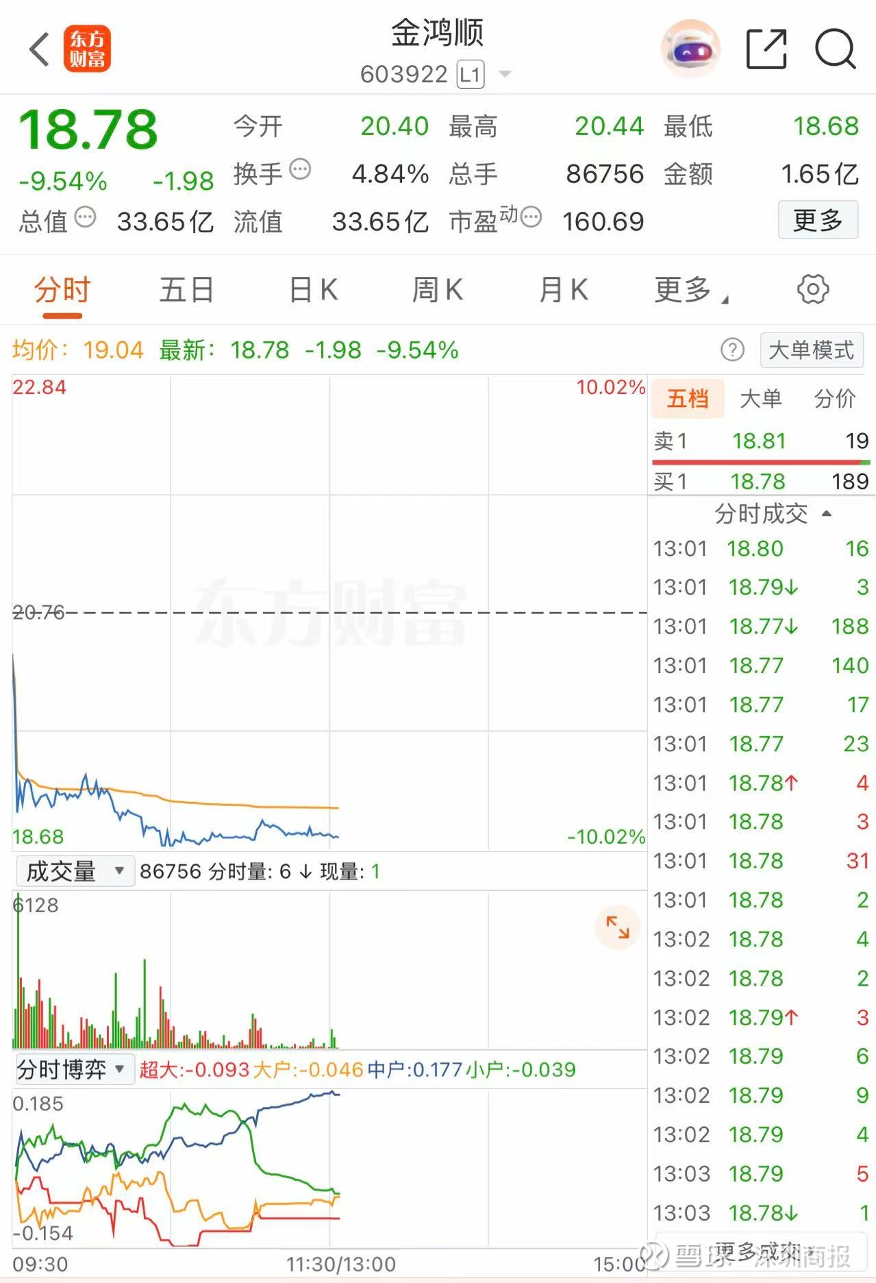 新年首个交易日,处在动荡中的金鸿顺(603922)股价大跳水,截至发稿,该股已跌超9%。
