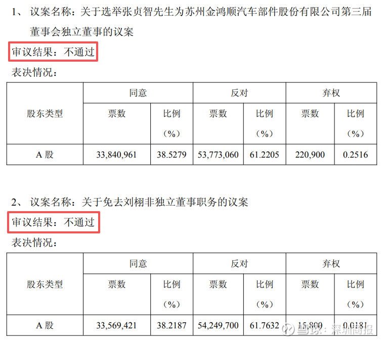 “免去刘栩非独立董事职务”议案的同意票占比为38.22%,反对票比例高达61.76%。