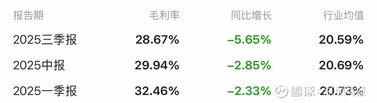 不过,公司业绩增长的同时,其毛利率已连续三个季度下滑,从2025年一季报的32.46%,逐渐下滑至2025年三季报的28.67%。
