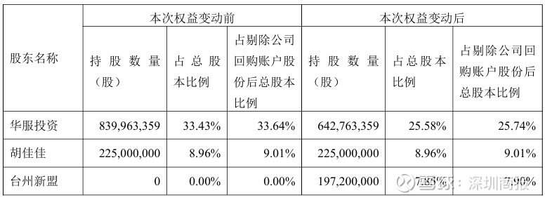 本次华服投资转让股份来源于公司首次公开发行前取得的股份,华服投资及其一致行动人胡佳佳自前次2023 年 11 月 9 日披露《简式权益变动报告书》后合计共转让了公司214,700,000.00 股,占公司总股本的 8.60%,除本次协议转让的 19,720 万股,占比 7.9%外,华服投资于 2024 年4月因司法拍卖转让 1750 万股公司股票。