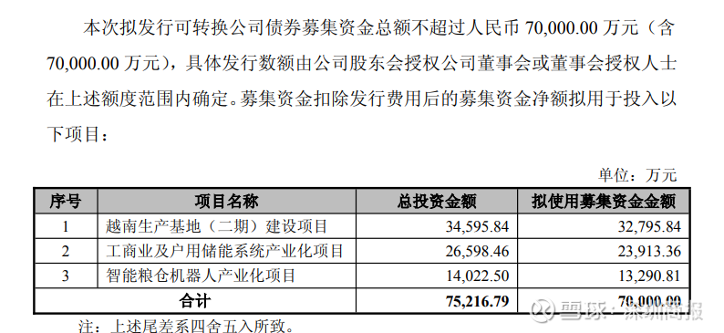 1月7日晚间,富佳股份(603219)公告,公司拟向不特定对象发行可转换公司债券募集资金不超过7亿元,募集资金扣除发行费用后的募集资金净额拟用于越南生产基地(二期)建设项目、工商业及户用储能系统产业化项目、智能粮仓机器人产业化项目。