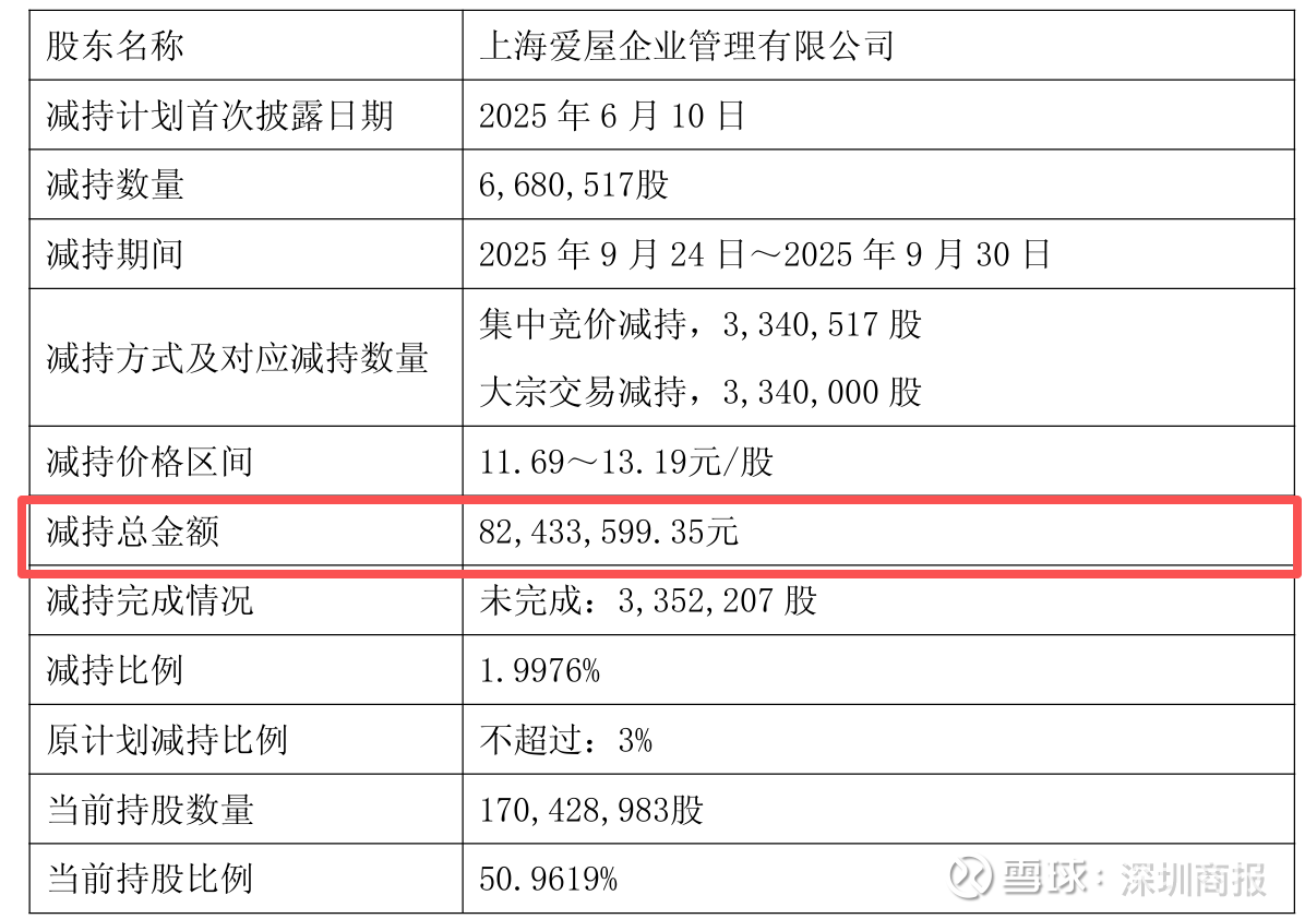 值得一提的是,爱屋企管刚于2025年9月24日至2025年9月30日减持了668.05万股,约占公司总股本的2%,套现8243.36万元。