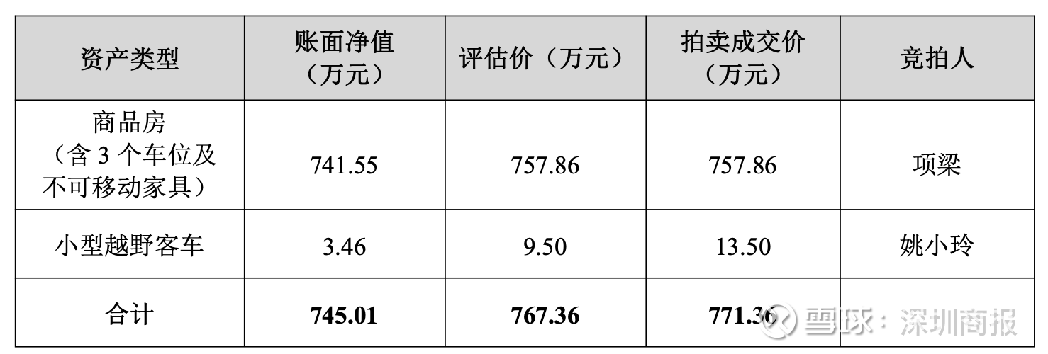 有趣的是,其中1处商品房及1辆小型越野客车确认竞拍产生的最终买受人为公司关联自然人项梁、姚小玲,最终成交价合计为771.36万元。