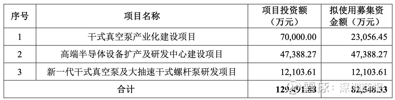 中科仪本次IPO拟募集资金8.25亿元,其中2.31亿元用于干式真空泵产业化建设项目、4.74亿元用于高端半导体设备扩产及研发中心建设项目,1.21亿元用于新一代干式真空泵及大抽速干式螺杆把研发项目,上述3个项目合计投资总额为12.94亿元。