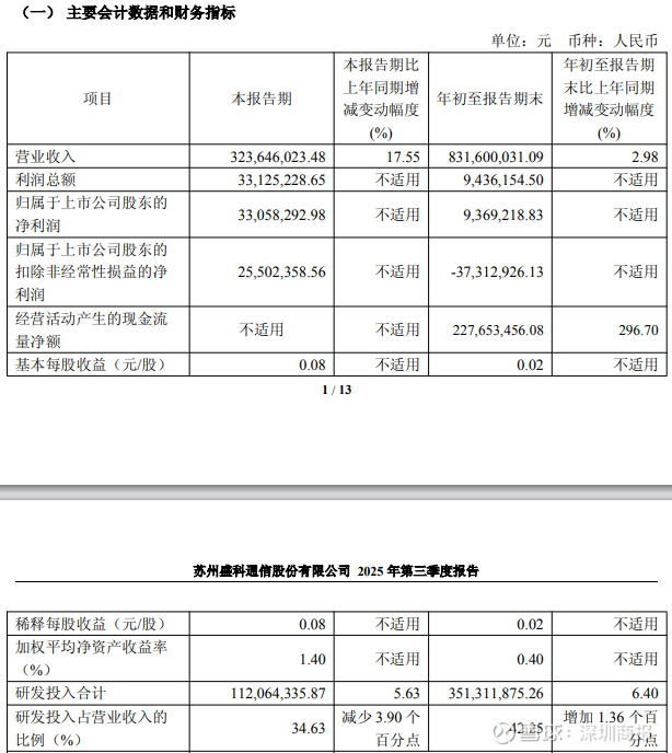 值得注意的是,读创财经注意到,2025年10月29日,盛科通信(688702)公布的2025年三季报显示,公司迎来扭亏为盈的好消息。前三季公司实现营业收入8.32亿元,同比上升2.98%;归母净利润自去年同期亏损7620万元成功扭亏,实现归母净利润937万元;扣非归母净利润自去年同期亏损1.05亿元变为亏损3731万元,亏损额有所减少。其中第三季度,公司营业收入为3.24亿元,同比上升17.55%;归母净利润自去年同期亏损1931万元成功扭亏,实现归母净利润3306万元;扣非归母净利润自去年同期亏损2513万元成功扭亏,实现扣非归母净利润2550万元。