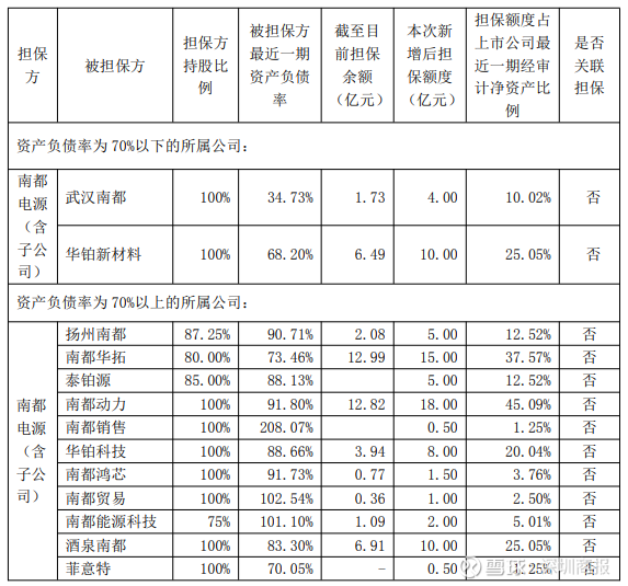 日前,南都电源(300068)发布公告称,公司及子公司提供担保额度超过最近一期经审计净资产100%、对资产负债率超过70%的单位担保额度超过公司最近一期经审计净资产50%,均为对子公司及控股子公司的担保。