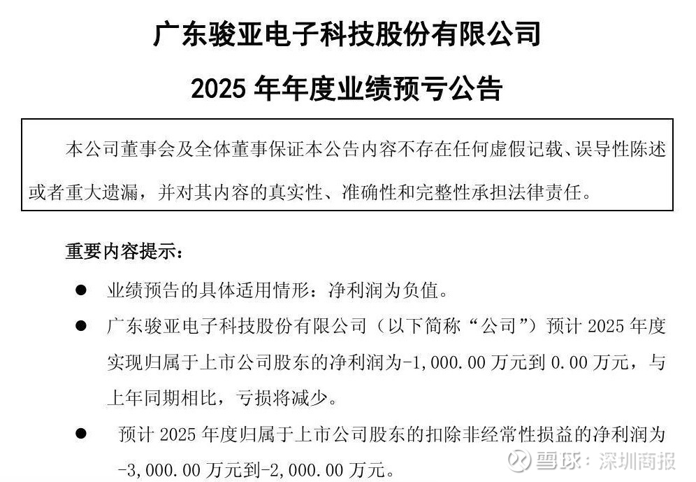 发布业绩预告当晚,骏亚科技同时公告称,近日,公司与中信银行股份有限公司赣州分行(以下简称“中信银行”)签署了《最高额保证合同》,为全资子公司龙南骏亚柔性与中信银行在2026年1月21日至2027年1月21日(包括该期间的起始日与届满日)期间所签署的主合同所形成的债务提供担保,保证方式为连带责任保证,公司本次为龙南骏亚柔性所担保的最高主债权本金为人民币3000万元整。