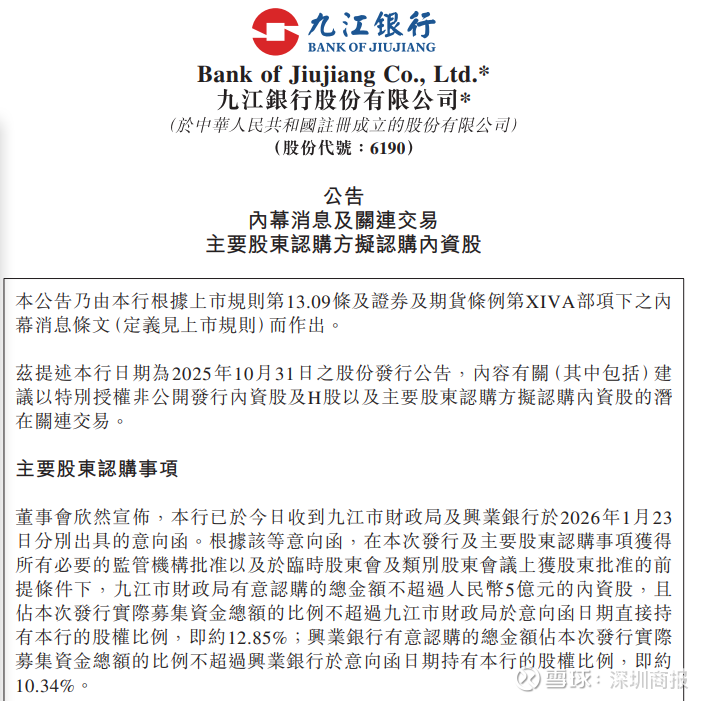 “九江银行此次增资,是该行在核心一级资本充足率面临下滑压力背景下的及时举措。作为地方国资的九江市财政局与战略同业股东兴业银行率先表态认购,其行动传递出双重关键信号:一是地方政府对维护属地金融机构稳定的坚定支持,有助于稳定市场预期;二是意味着该行旨在补充资本、增强风险抵御能力的计划获得了关键内部认可,为后续成功完成增资奠定基础。”