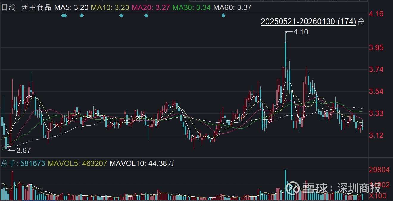 二级市场上,截至1月30日收盘,西王食品下跌1.25%报3.17元/股,总市值约34.22亿元,近一年来公司股价近乎“原地踏步”。