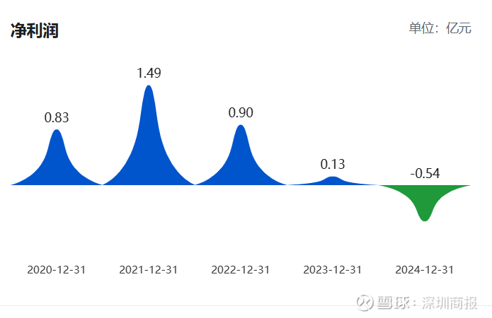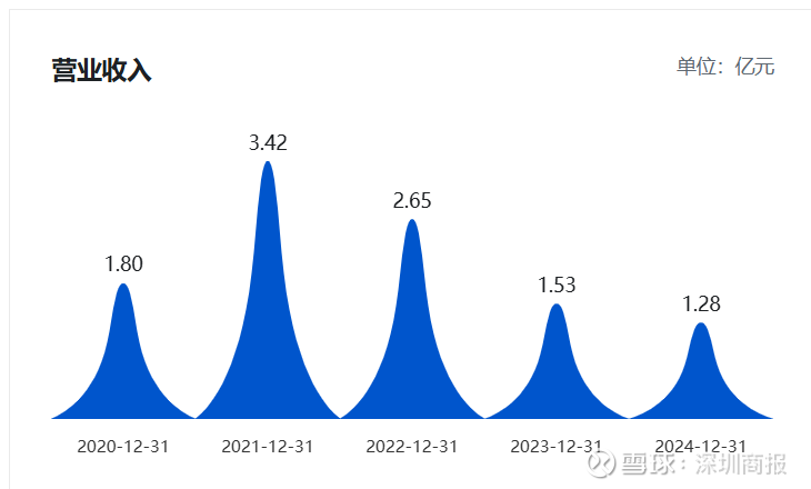 查看往年业绩,公司自2021年起营业收入和净利润均连年下滑,营业收入从2021年的3.42亿元下滑至2024年的1.28亿元。净利润从2021年的盈利1.49亿元一路减盈,至2024年已盈转亏损0.54亿元,从2025年业绩预告来看,净利相较上年进一步扩大。