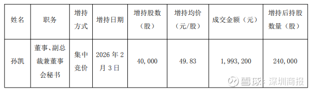 2月3日晚间,兴业银锡公告称,基于对公司未来发展的信心及长期投资价值的认可,公司董事、副总裁兼董事会秘书孙凯于2026年2月3日通过集中竞价交易方式买入公司股份40,000股,占公司总股本的0.0023%。