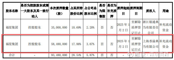 再来看福星集团,截至2025年三季度末,福星集团累计质押股份数量为1.5亿股,占其所持股份的比例近46%。