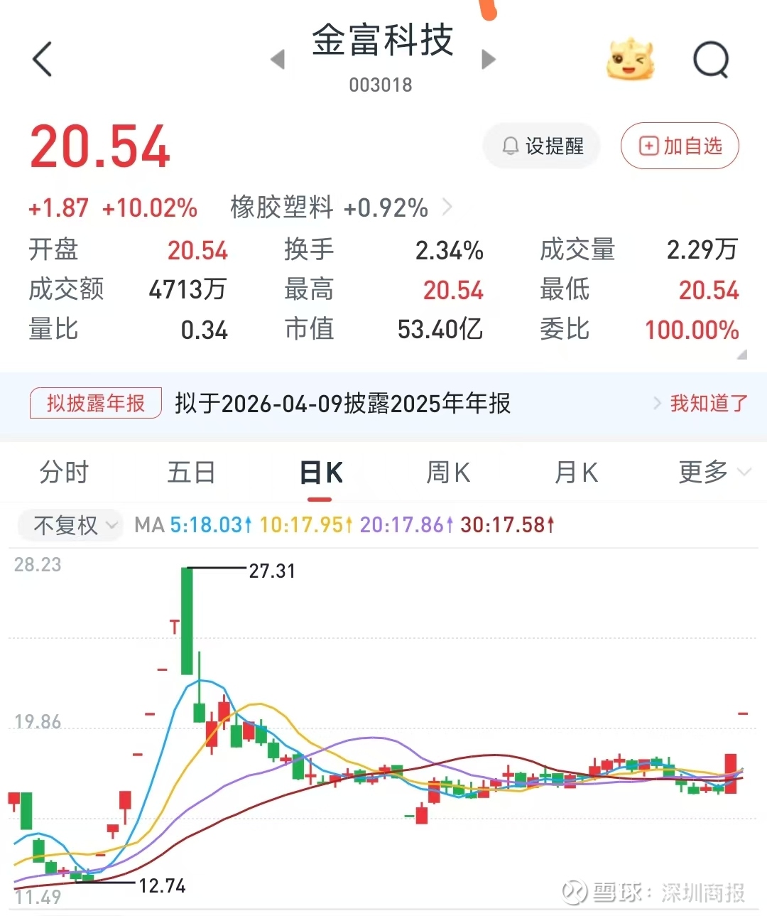 二级市场上,2月6日金富科技开盘后一字涨停至收盘,反映市场资金对公司拟议中的跨界收购反应乐观。