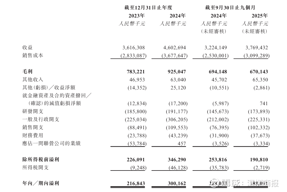 资料显示,2023年度、2024年度、2025年前三季度(下称报告期),伊戈尔分别实现收益约36.16亿元、46.03亿元、37.69亿元,期内溢利分别约为2.17亿元、3亿元、1.88亿元。同期,公司毛利率分别为21.7%、20.1%、17.8%,呈逐年下滑趋势。