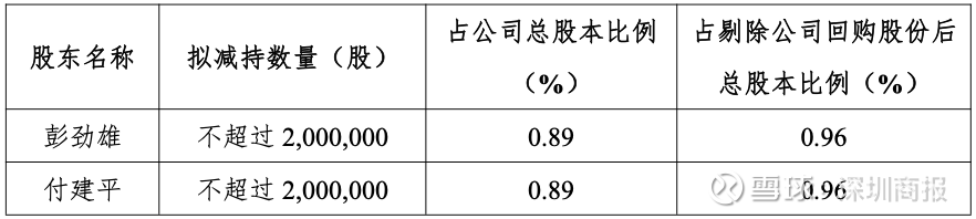 公告显示,持有公司股份17,320,185股(占公司总股本比例为7.71%,占剔除公司回购专用证券账户中的股份数量后总股本比例为8.32%)的公司董事兼高级管理人员彭劲雄计划以大宗交易或集中竞价的交易方式减持其持有的本公司股份,减持数量不超过200万股,约占公司总股本比例为0.89%,占剔除公司回购专用证券账户中的股份数量后总股本比例为0.96%。