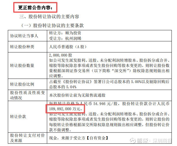 根据协议,顺为投资因基金存续期即将届满退出所需,拟通过协议转让方式将其持有的趣睡科技200万股股票(占趣睡科技总股本的5.00%,对应占剔除公司已回购股份后总股本的5.04%)以每股54.946元的价格转让给杭州润晞,转让总价约1.1亿元。资金来源为杭州润晞自有资金。