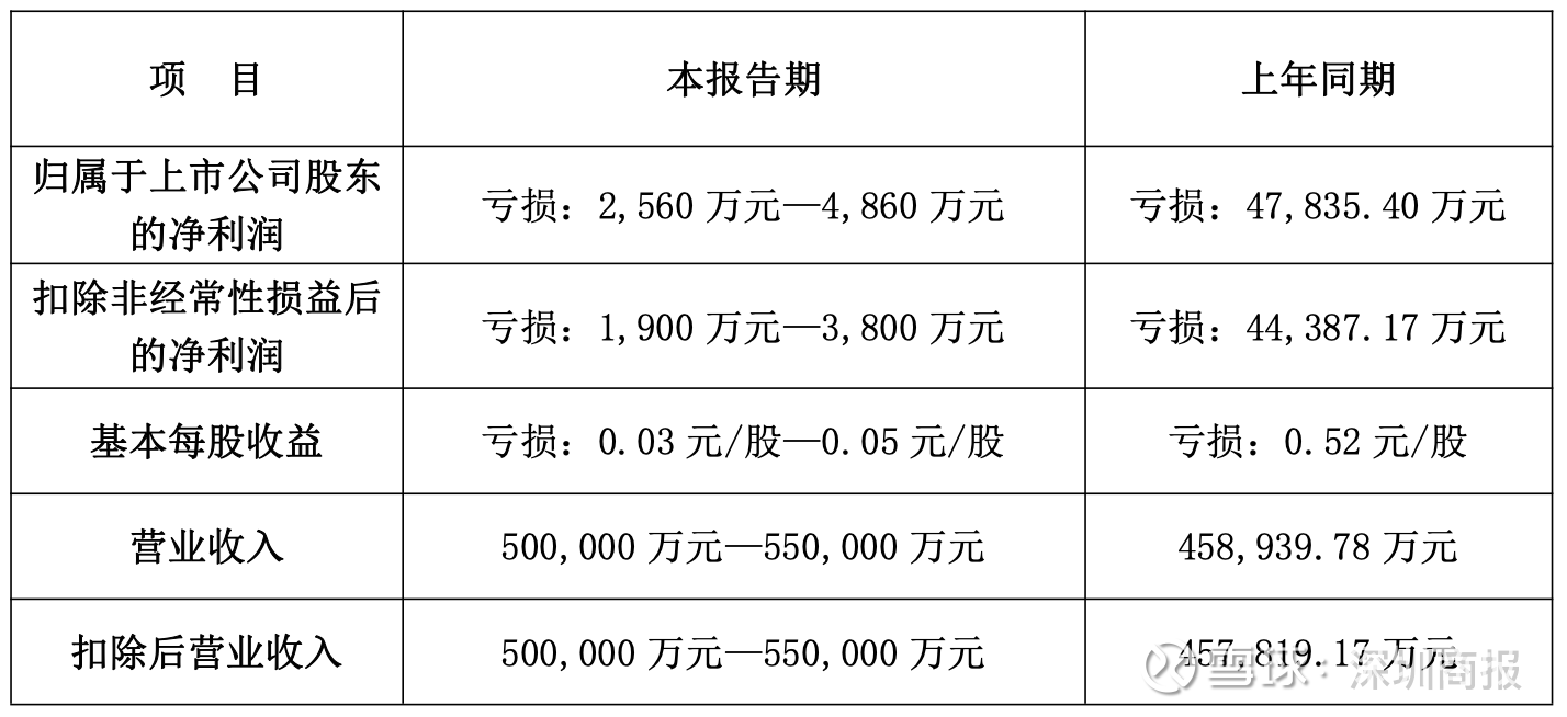 公司预计2025年实现营业收入50亿元至55亿元;归母净利润亏损2560万元至4860万元,上年同期亏损4.78亿元;扣非净利润亏损1900万元至3800万元,同比减亏约4.06亿元–4.25亿元,亏损幅度收窄91.44%–95.72%。