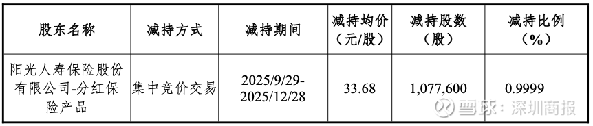 2025年12月29日,华康洁净公告,阳光人寿在当年9月29日至12月28日,减持公司股份107.76万股,减持比例占公司总股本1.08亿股(截至2025年12月26日数据)的0.9999%,减持金额约3629万元。