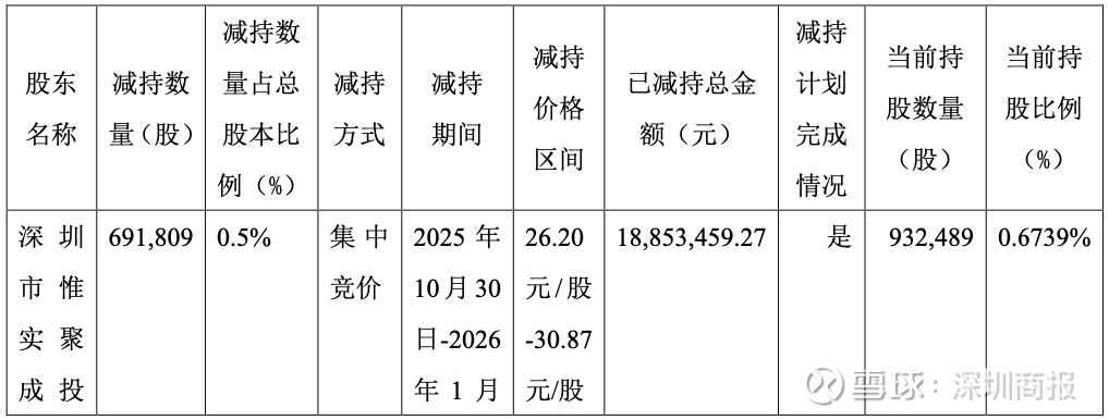 此外,则成电子1月14日公告,深圳市惟实聚成投资合伙企业(有限合伙)作为公司员工持股平台,已通过集中竞价方式累计减持公司股份691,809股,占公司总股本的0.50%,减持期间为2025年10月30日至2026年1月13日,减持价格区间为26.20元/股至30.87元/股,累计减持金额为1885.35万元。本次减持计划已实施完毕,减持后该股东持股比例由1.1739%降至0.6739%。
