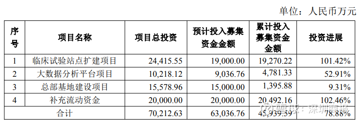 截至2025年12月31日,公司首次公开发行股票募投项目累计使用募集资金4.59亿元,预计投入募集资金为6.30亿元,剩余尚未使用的募集资金余额为1.94亿元。其中,大数据分析平台预计投入募集资金9036.76万元,截至2025年底累计投入4781.33万元,投资进展为52.91%。